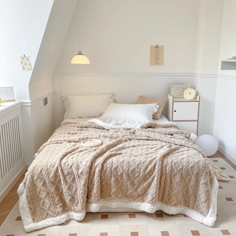 Manta de Vellón de Doble Capa - Frazada Gruesa y Cálida de Coral Fleece para Cama y Sofá